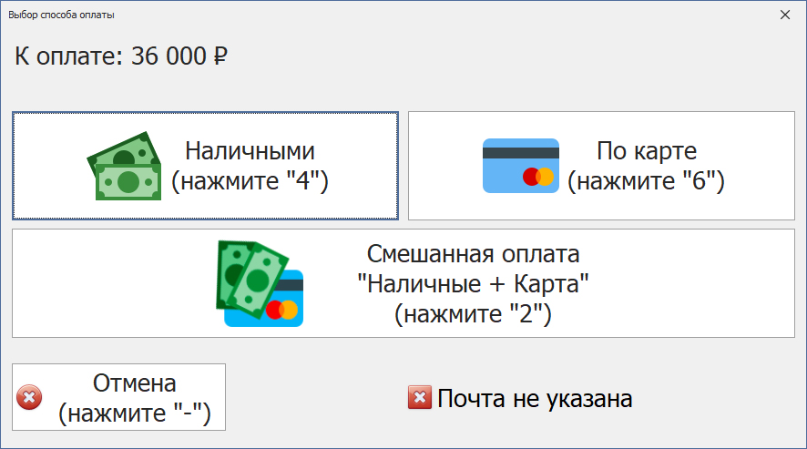 Рис. 6 Терминал РКУ — смешанная оплата