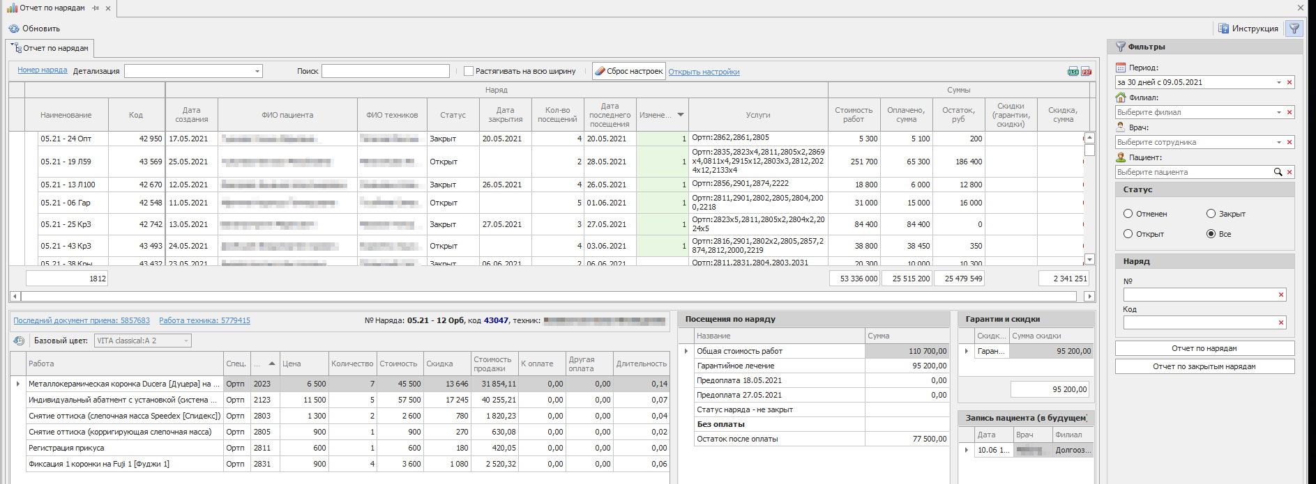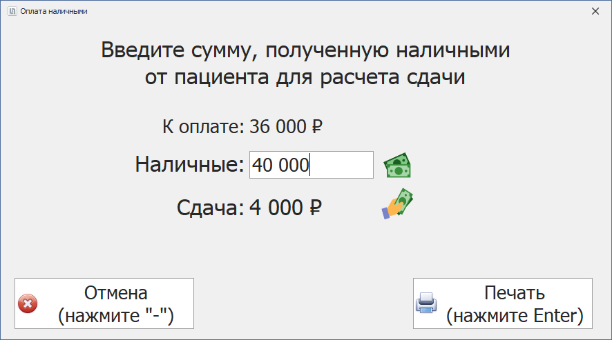 Система показывает пользователю (пациенту либо кассиру), сколько нужно взять денег «здесь и сейчас» — с учетом всех деталей и истории взаиморасчетов (авансы, поэтапные оплаты, перерасчеты и возвраты по гарантии).