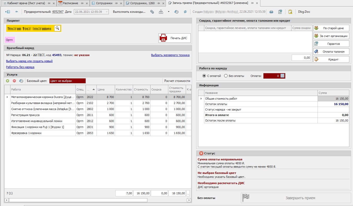 Индивидуальная схема взаиморасчетов с каждым отдельным пациентом фиксируется в системе еще на этапе приема у врача.