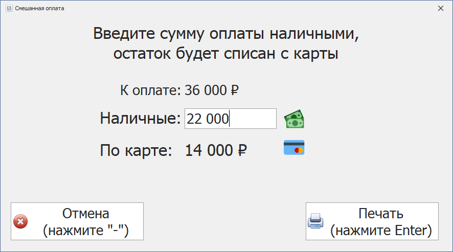 Рис. 6 Терминал РКУ — смешанная оплата