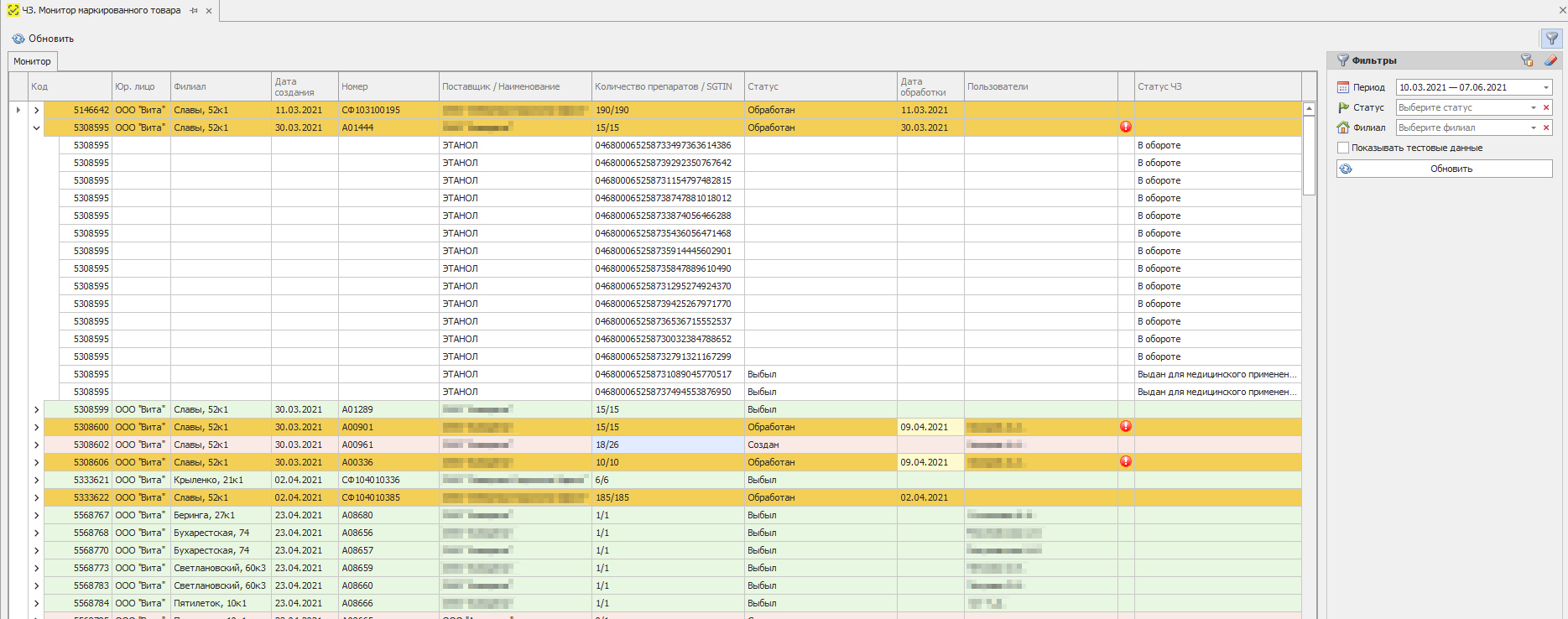Рис. 10 Монитор маркированного товара “Честный знак”