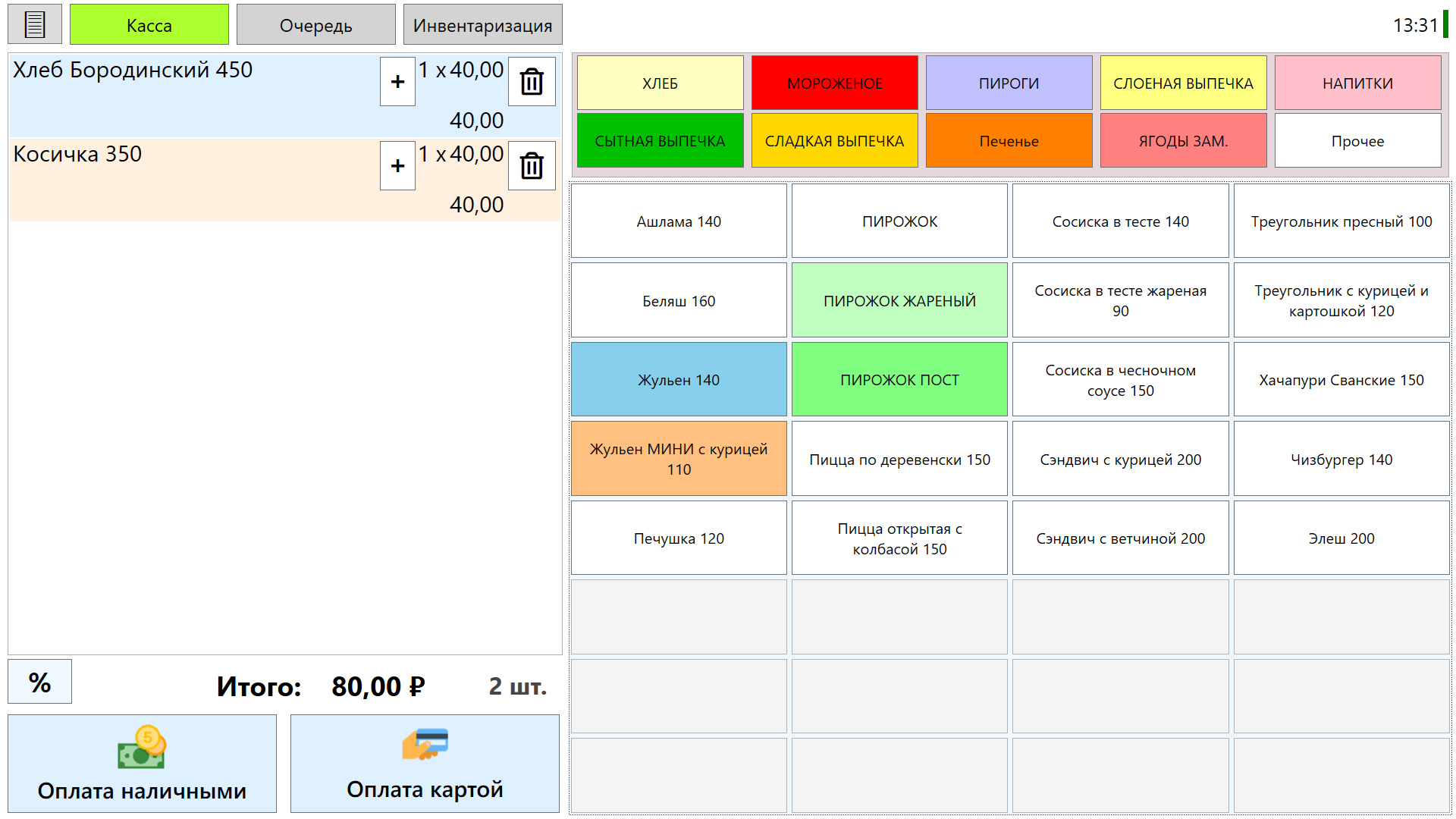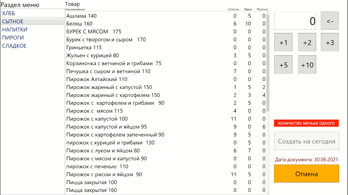 Крайне важно, для точного учета, что именно мы продаем. Не просто «пирожок с начинкой», а «круассан с капустой», «...луком и яйцом», и т.п.
