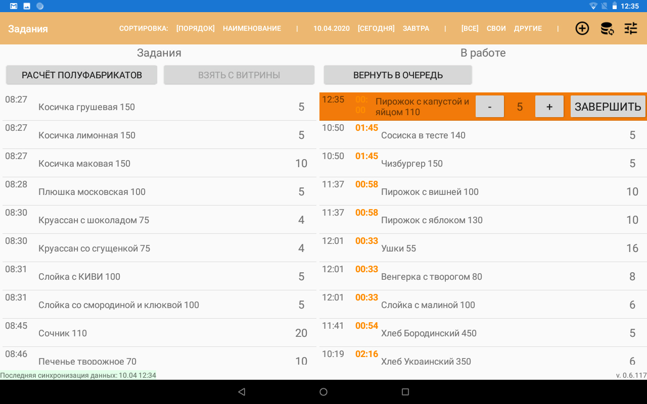 Задания отображаются на планшете пекаря.