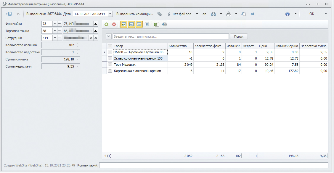 Результирующий документ сформируется сам, причем недостачи и излишки вам покажутся сразу в разрезе себестоимости.