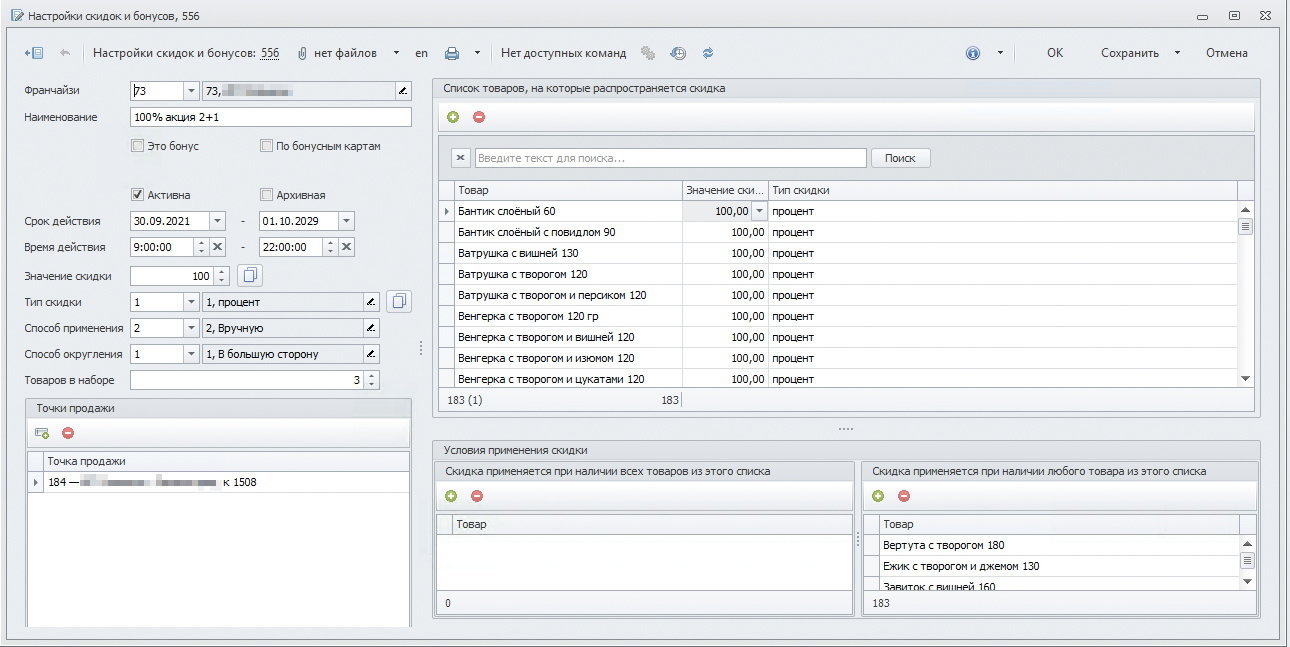 Справедливо и для любых других практически осмысленных акционных вариантов, например «при покупке любой выпечки скидка на хлеб 50%».