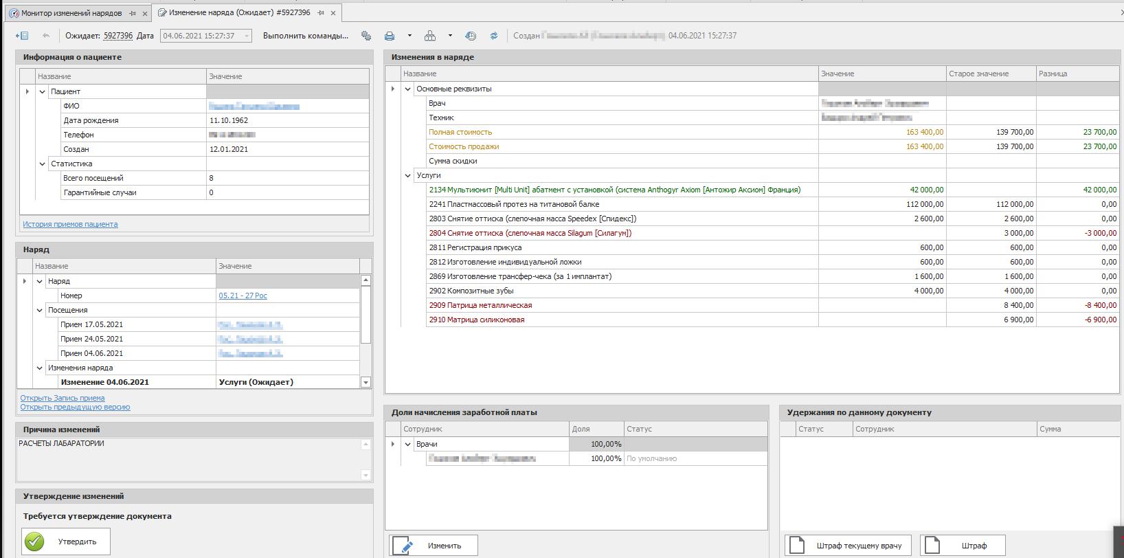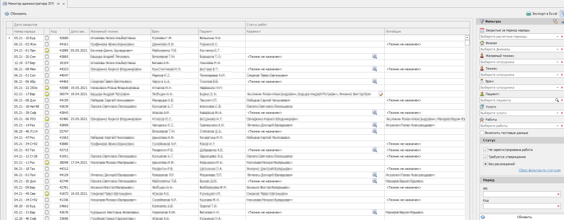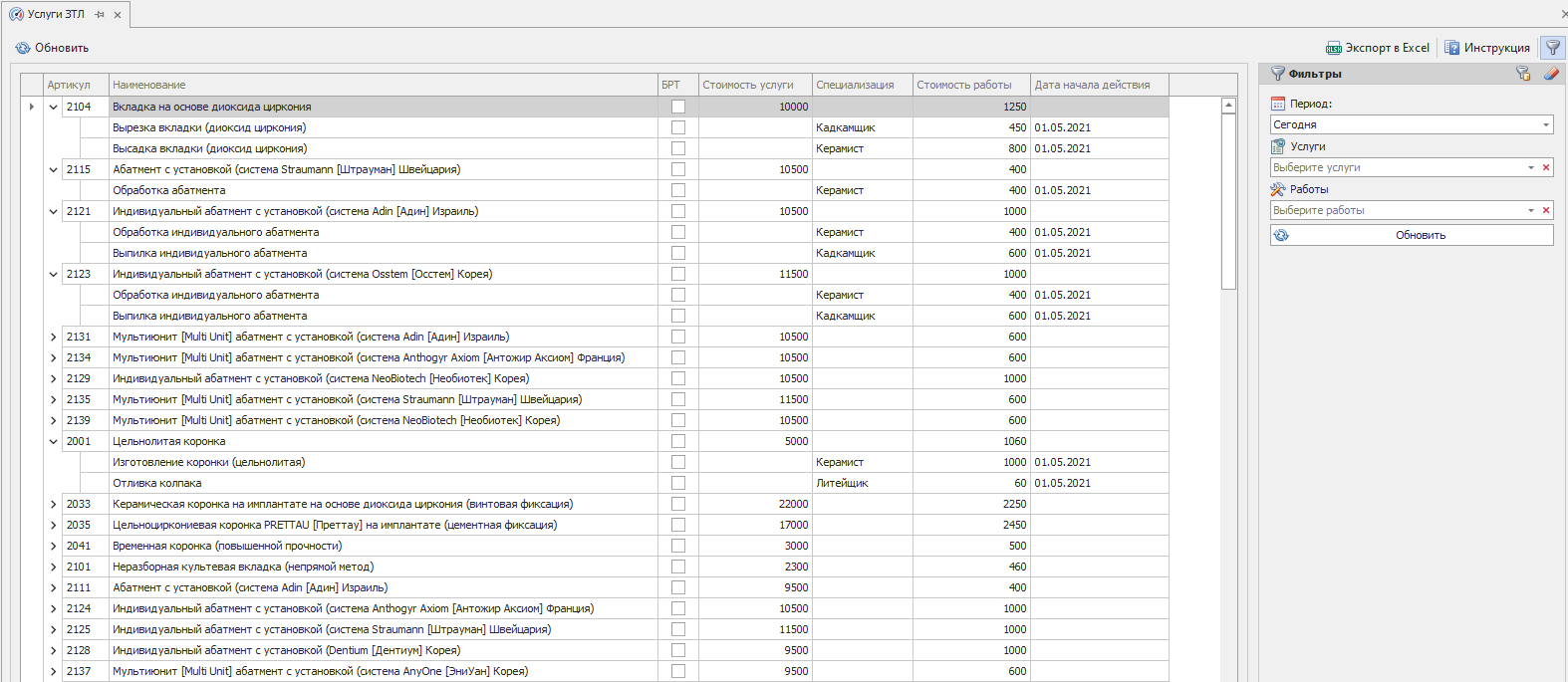 Рис. 1 Производственный наряд зуботехнической лаборатории (ЗТЛ)
