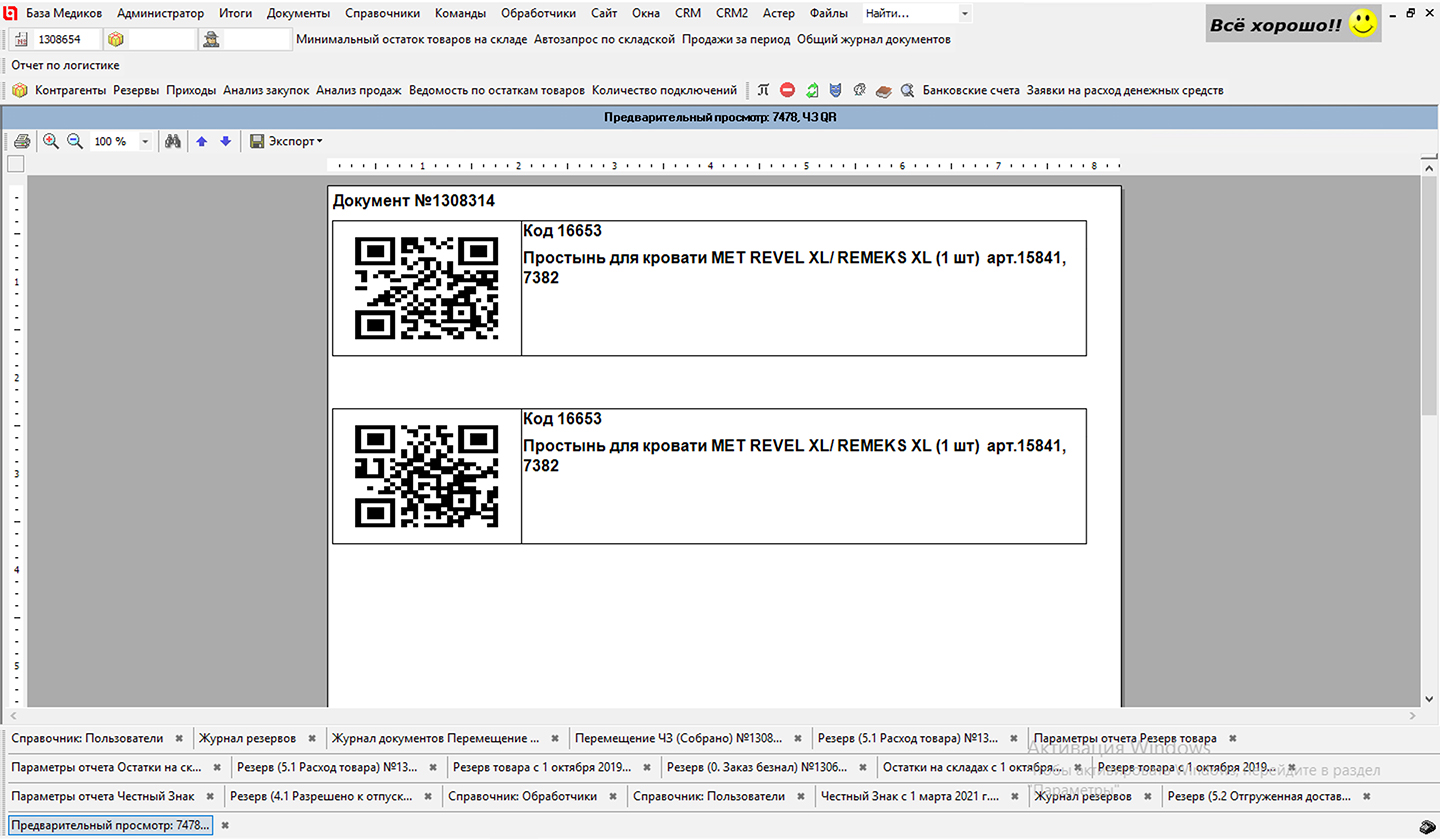Рис. 8 Распечатка QR-кодов Честного знака для розницы