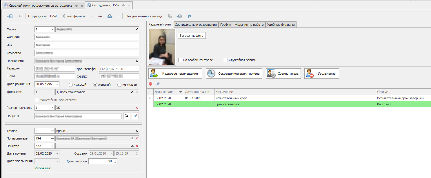 Рис. 4 Сотрудник — кадровый учет