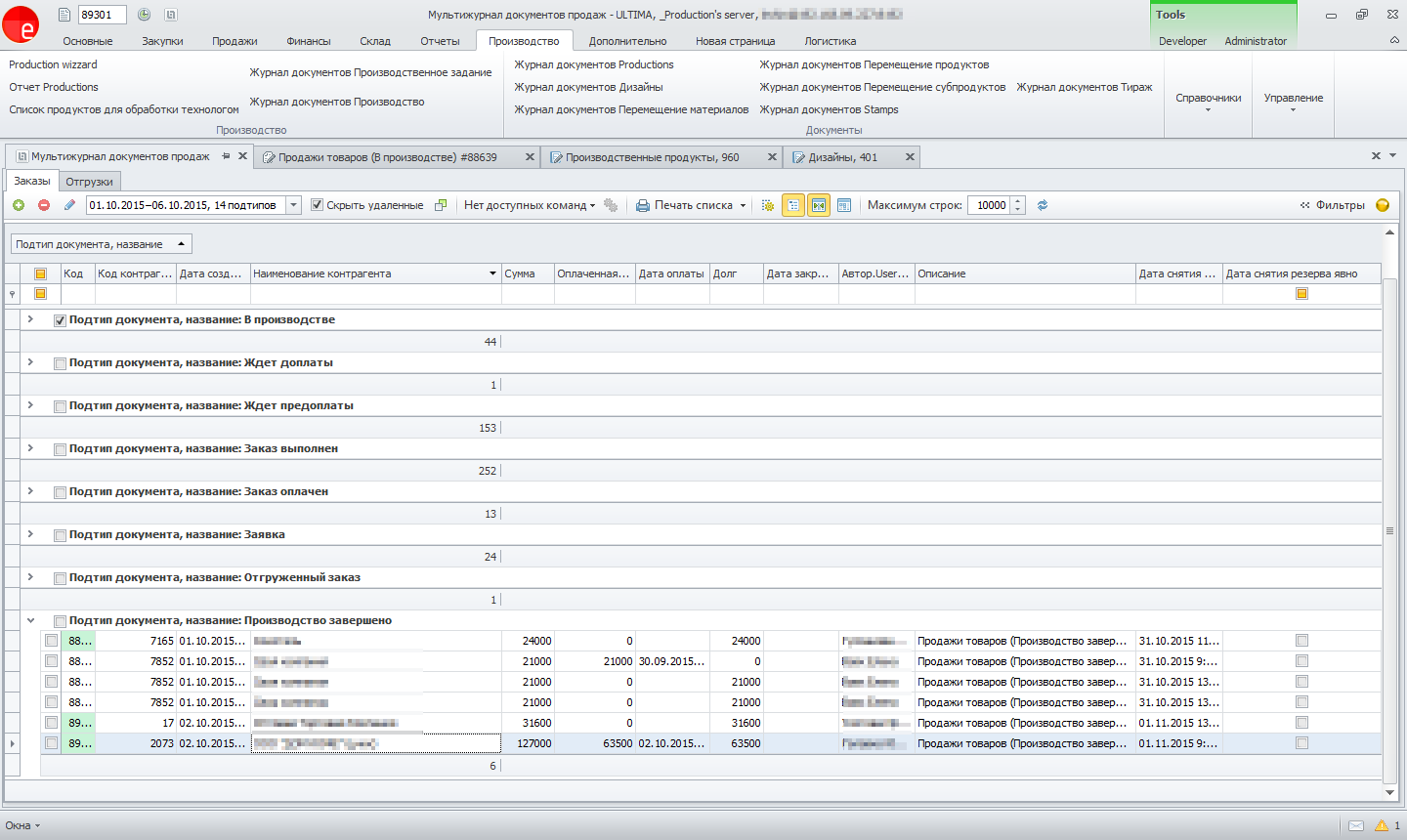 Производственный брак сократился на порядок — специфические требования клиента, ранее передававшиеся (терявшиеся) почтой-аськой-скайпом, теперь фиксируются в технологической карте продукта в системе и контролируются автоматически.
