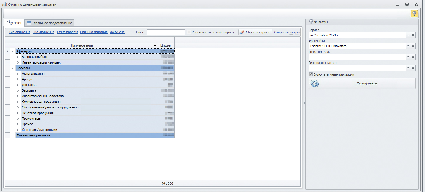Рис. 4 Отчет по финансовому результату франчайзи