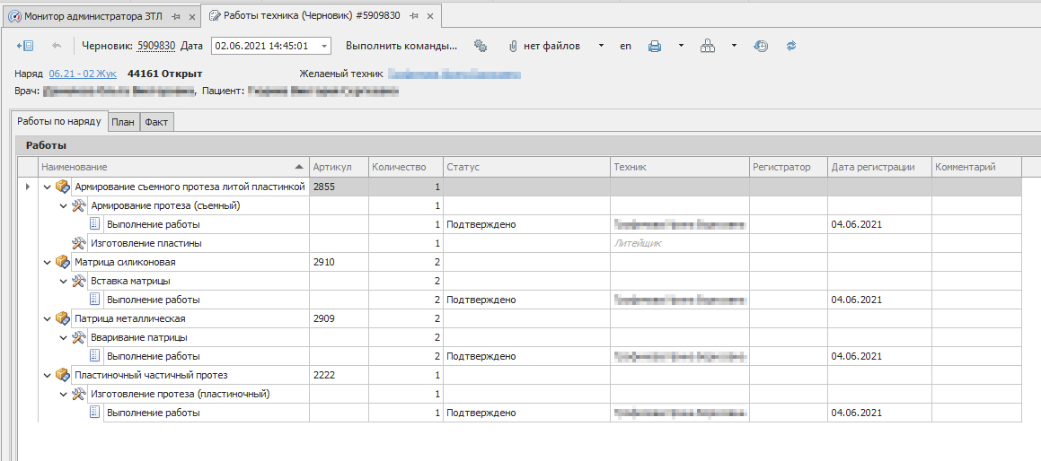 Рис. 1 Производственный наряд зуботехнической лаборатории (ЗТЛ)