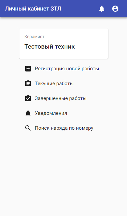Рис. 4 Мобильное приложение ЗТЛ, стартовый экран