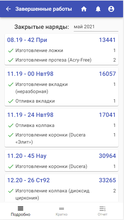 Рис. 7 Мобильное приложение ЗТЛ — история закрытых нарядов